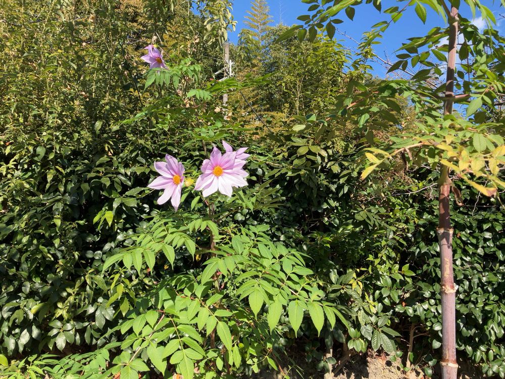 門の外には、皇帝ダリアや木瓜も咲いてました🍀