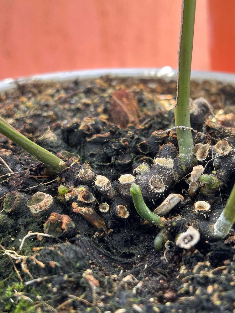 黄色くなった古い葉は長く、再生したボリュームがこれまでより小さくなったのがわかる。