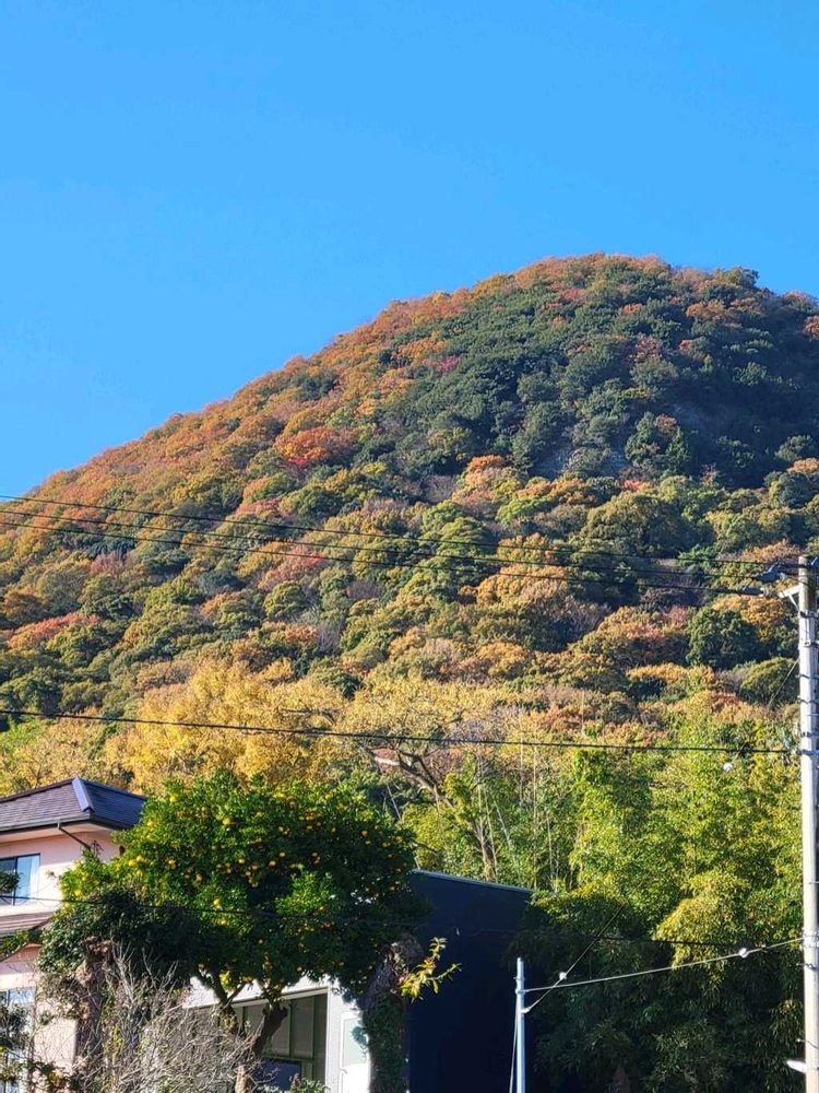 ①②③日差しを浴びて裏山が紅葉で綺麗に色づき、化粧したように華やかに見えました。