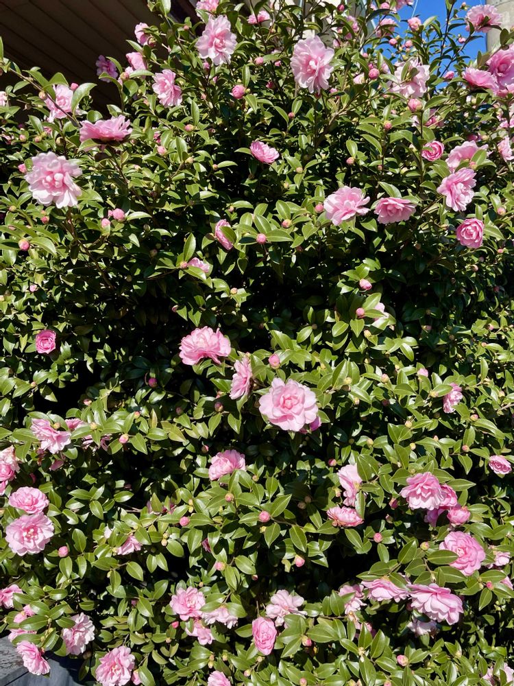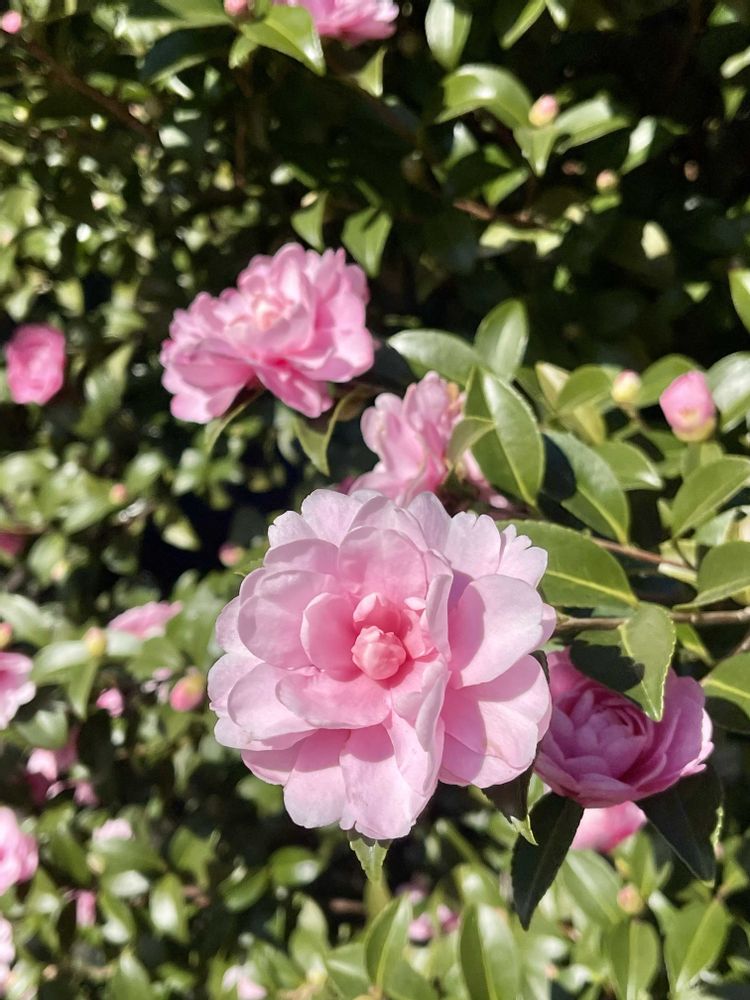 母の通院付き添い途中で可愛いサザンカ発見🩷