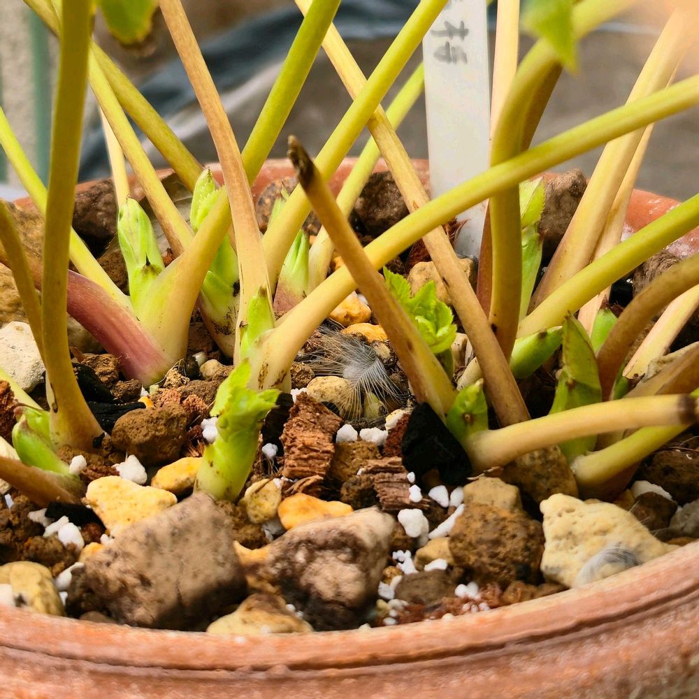 pic3も前回出した雅さん✕2。こちらはいつも通り。小輪雅グリーンリップは花芽が9つ位、雅ホワイトリップは4つ位。雅さんは遅咲きなので、世界展がちょうど良い開花タイミングになるかと。今、古葉切ると花芽が葉芽に変化する可能性があるので年明けくらいまでは葉は切りません。葉を切ると花芽の成長速度上りますので、開花コントロールも兼ねて我慢我慢。