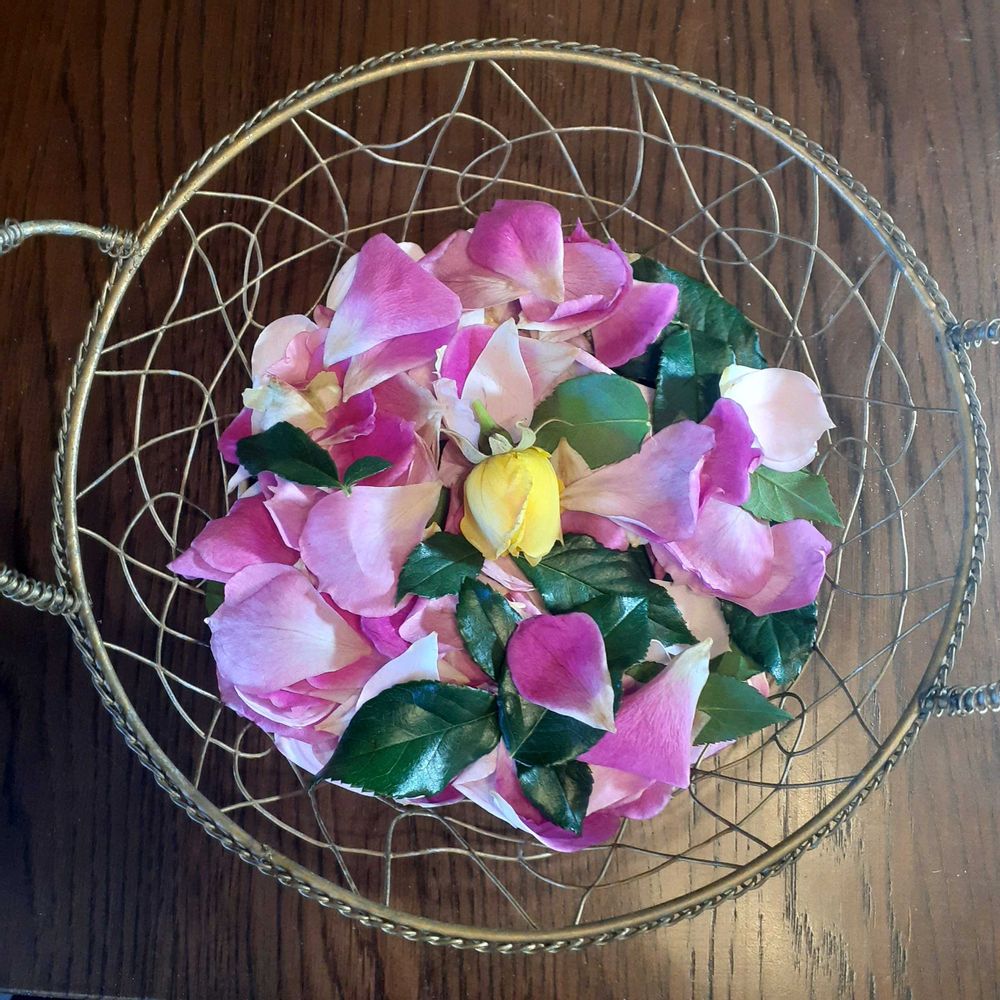 ③シェラザード咲いていましたが傷んでいちのでカットしました🌹バラの葉っぱ😊ゴールドバニーの蕾、花は傷んだもの☆は全部カットしたけど蕾がまだあります✨