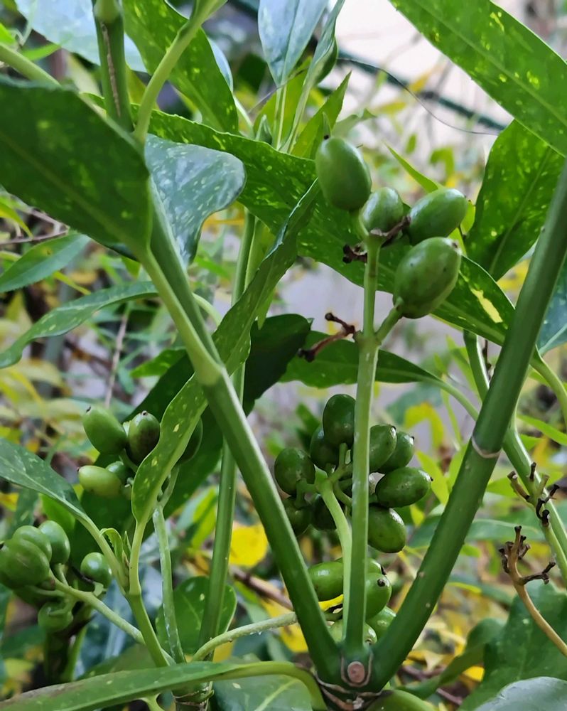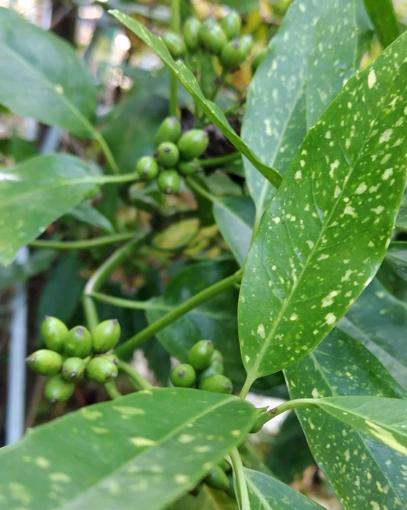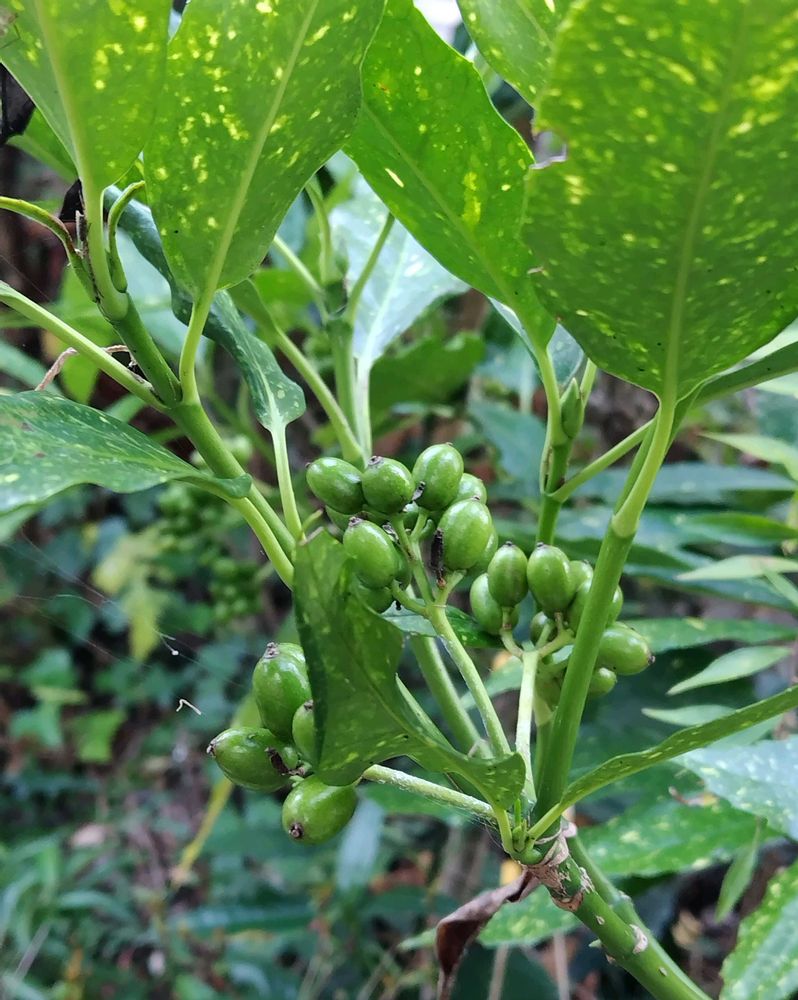 斑入りアオキの葉っぱと実💚🫒💚✨