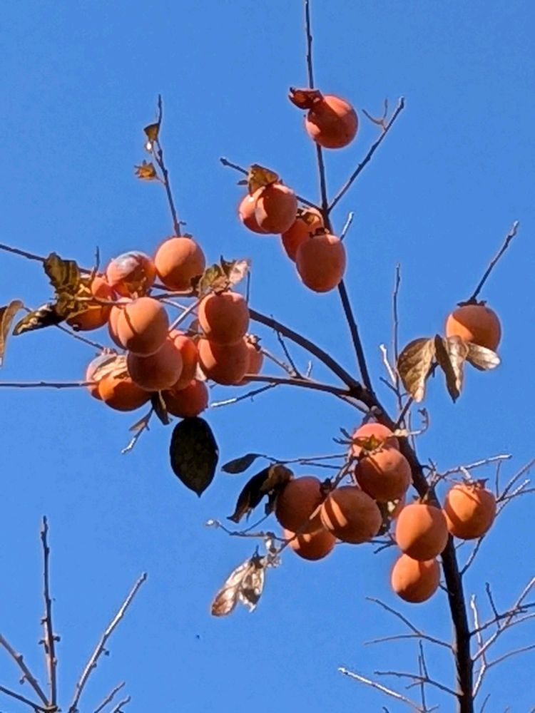⑤雲ひとつない青空とお隣さんの柿