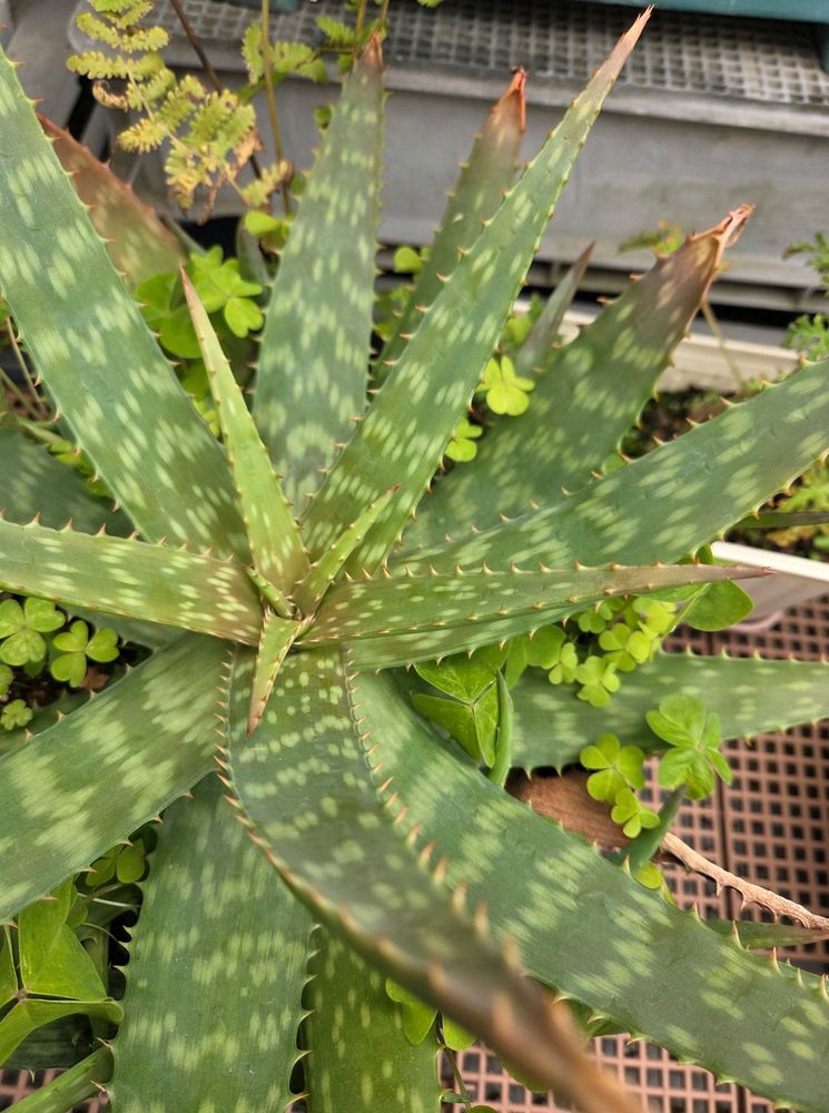 アロエベラのまわりにクローバー☘️このまわりは怖くて手が出せない😅傷だらけになります⚠️
