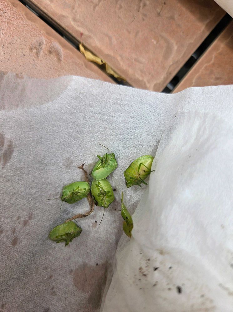 最初見つけたサッシのは茶色だったの🫢あとは緑色ばかり🐢こんなに退治したの始めて~😟