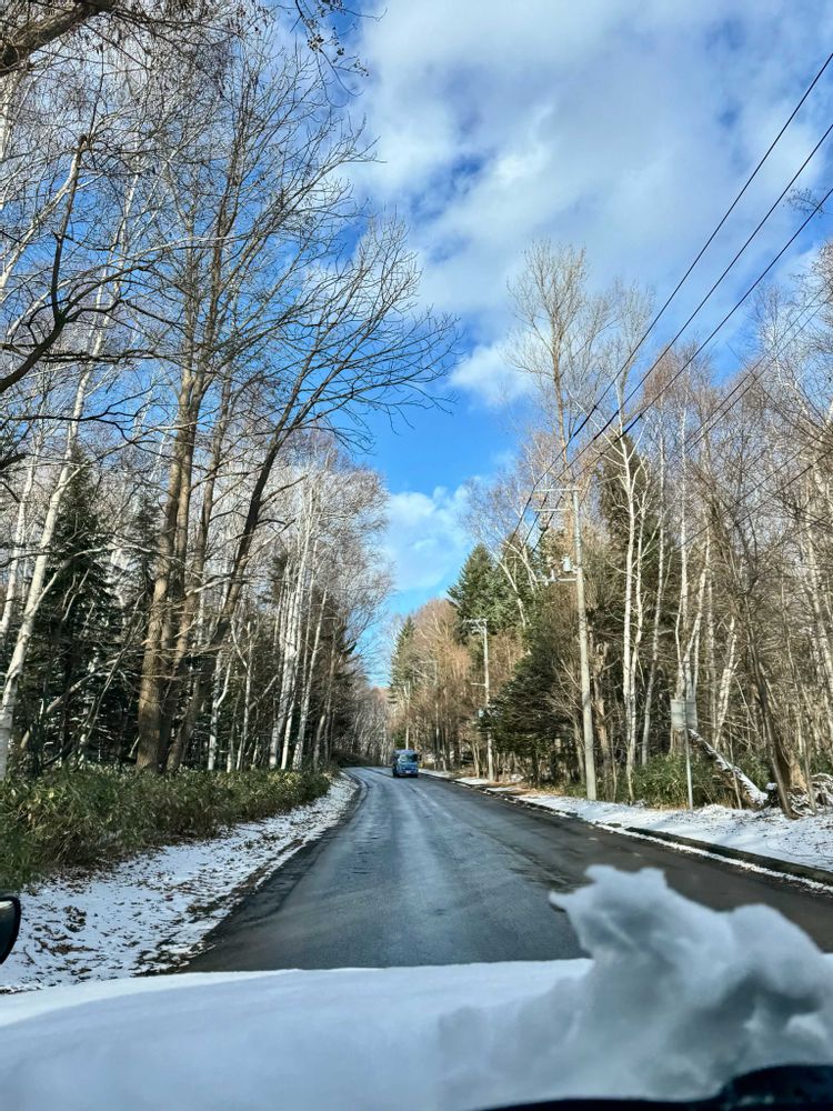 ⑤昨日の道路(たまに、アイスバーン💦(・・;))ボンネットの雪が