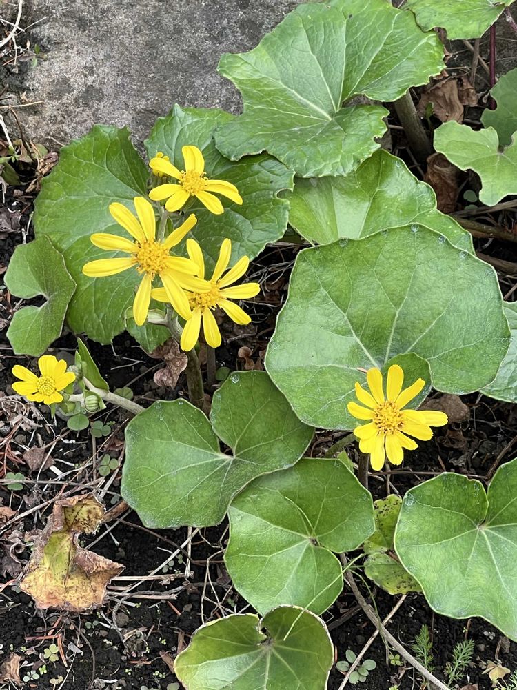 ツワブキ 緑道にたくさん咲いていました 黄色い花好き