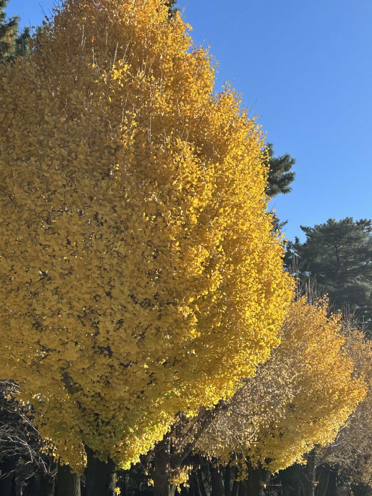 大きなイチョウの木が黄色く輝いていました💛木蓮の木も蕾が少しだけ膨らんでいます