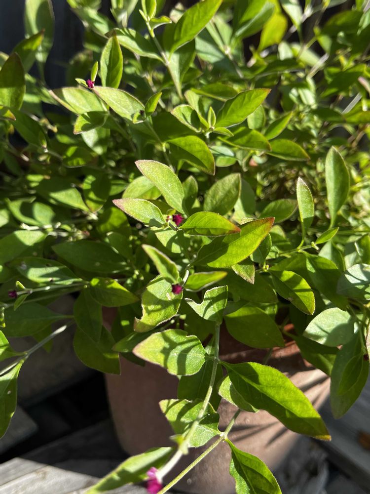 花屋さんで小さな葉っぱだけの苗。札にワレモコウみたいな写真が載ってたので、¥80 だし買ってみた😉