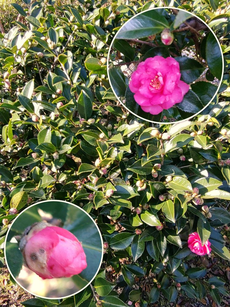 ①たくさんの蕾をつけてる山茶花。