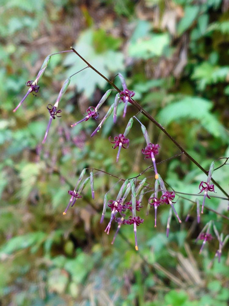頭花は円錐花序に多数ついて下垂し、花径約5mm花冠は1.5~1.8cm