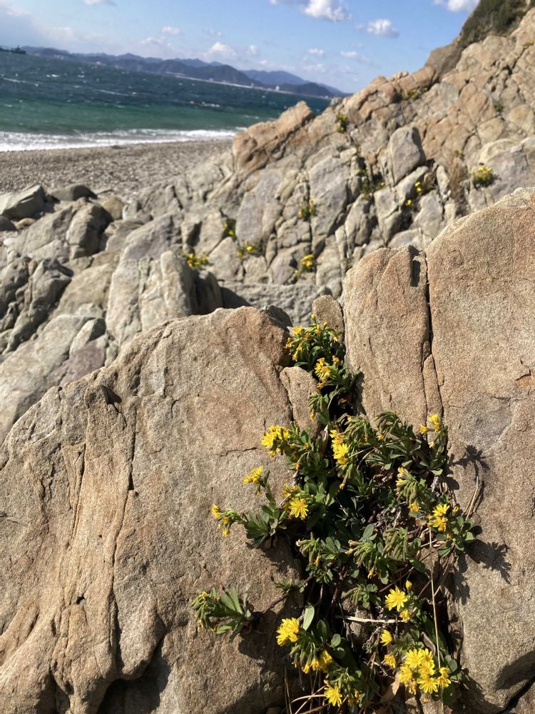 海岸の厳しい環境を好んで、岩のわずかな隙間に根を張ってます
