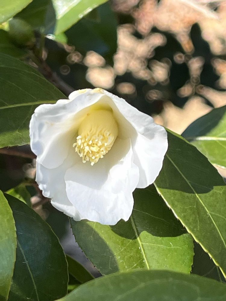 ➀ 白く少し小粒な椿が先陣を切って咲き始めていました。