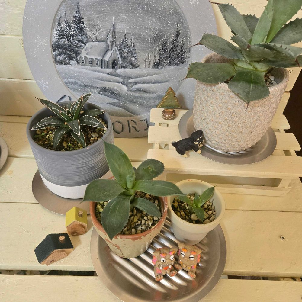 アガベです…でも、手前の小さな子は知らない間に横から育ってました…ョ😄