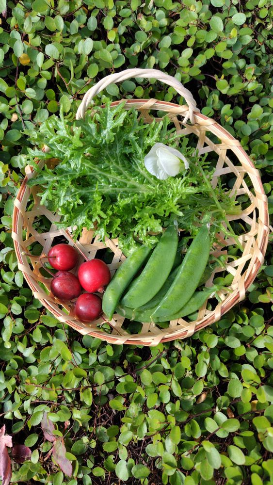 わさび菜・美笹えんどう豆・ヒメリンゴ🍎