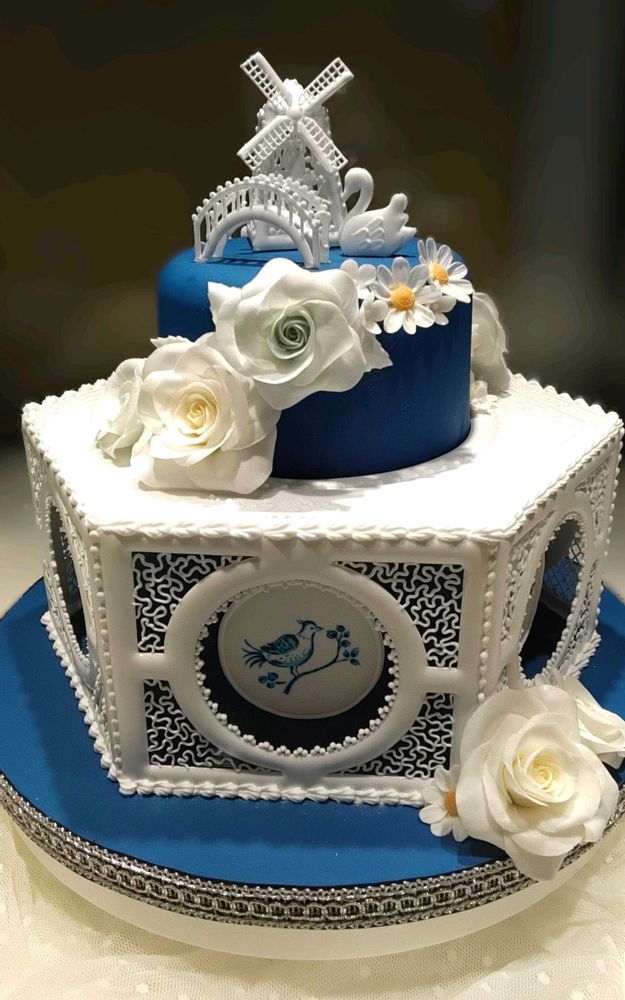 ブルーに白い薔薇のケーキですねー✨💍✨
