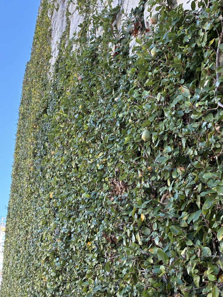 駅北広場の壁面緑化のオオイタビ