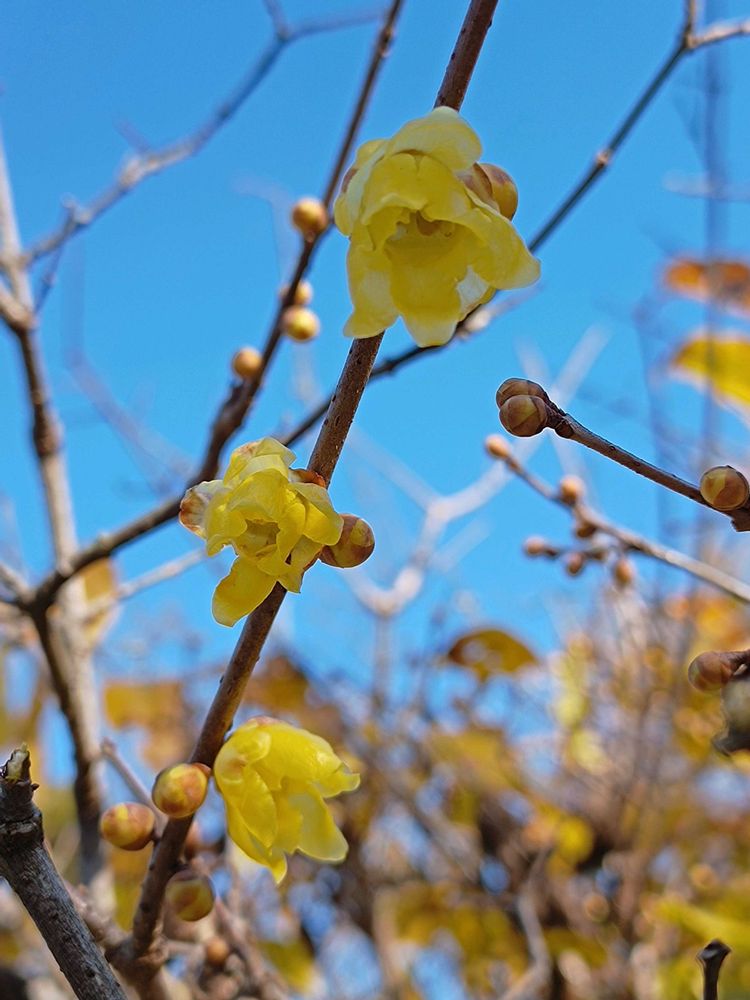 これから3種類のロウバイが3月初めまで順番に咲いて行きます。🥰