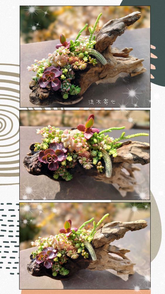 過去にも寄せ植えしてきた、いつもの元メダカ用流木です😊