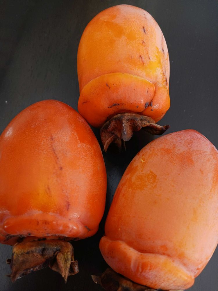 ②筆柿ももう、終わりになり渋も抜けて甘くなってるね