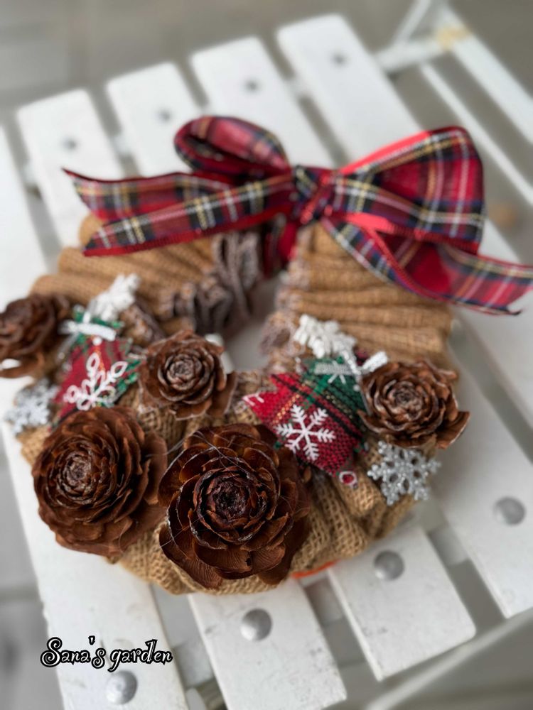 ハロウィンの時に作った麻布リースを裏っ返してクリスマスリースを作りました☝️🤣💨💕