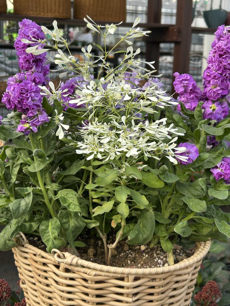 素敵な紫系のチャツネちゃんの好きそうなリースや寄せ植えのお花たちだね〜💜💙✨🥰