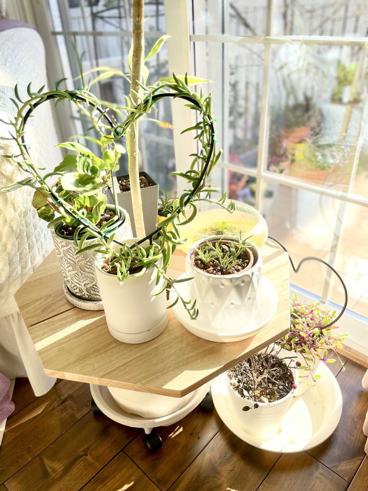 植え替えたり、挿し芽をした鉢の成長を見守る場所。今年卵から孵ったメダカちゃんたちもいます◡̈⃝︎⋆︎*