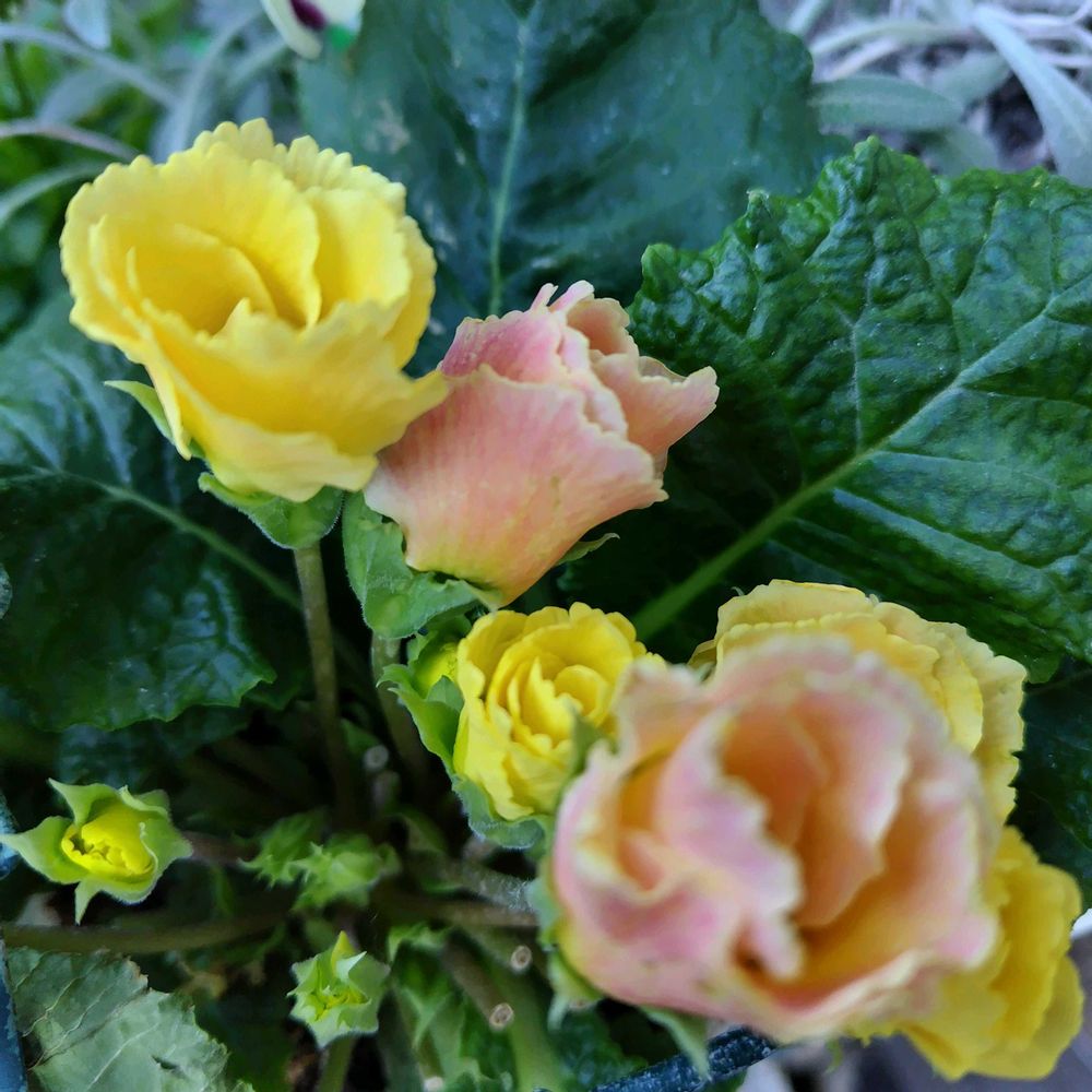 バラ咲きプリムラジュリアン…〜🧡💛🧡💛🌱🌿