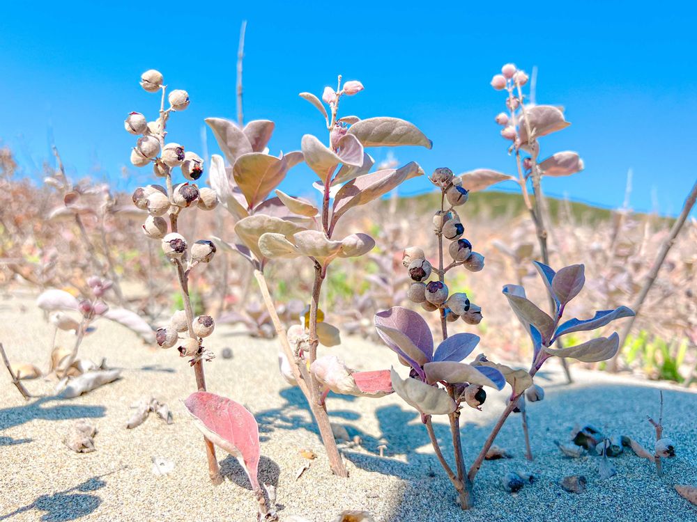 ハマゴウさんが実をポコポコさせて枕になってくださる準備をしていらっしゃるよ