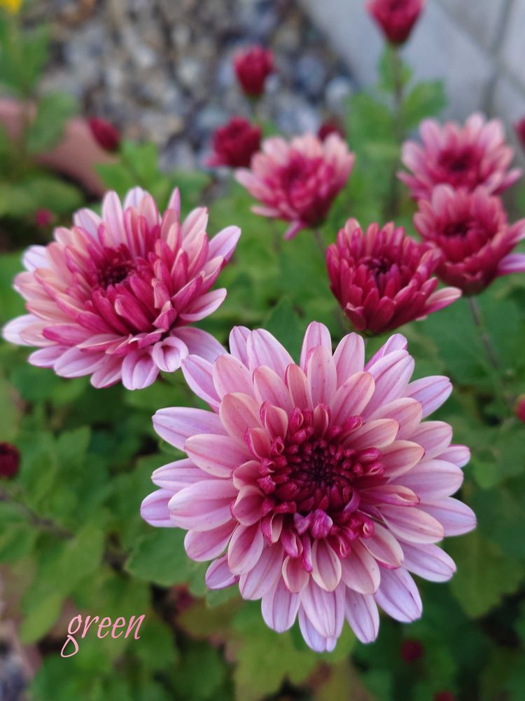 お庭のお花が少なくなってきたけれど、優しいピンクのマムや鮮やかな黄色のツワブキに癒されてます(人 •͈ᴗ•͈)♡