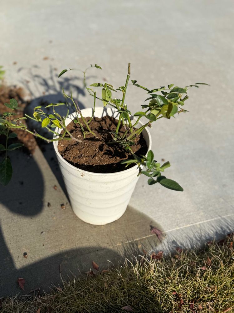 可愛くお花が咲いておりますが、新しい土を開けたので、ついでに用土替えをしようと、早めの冬剪定に踏み切りました😱