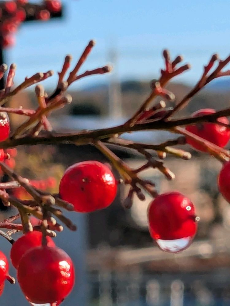 青空、赤い実、葉っぱ、素敵ですね🥰
