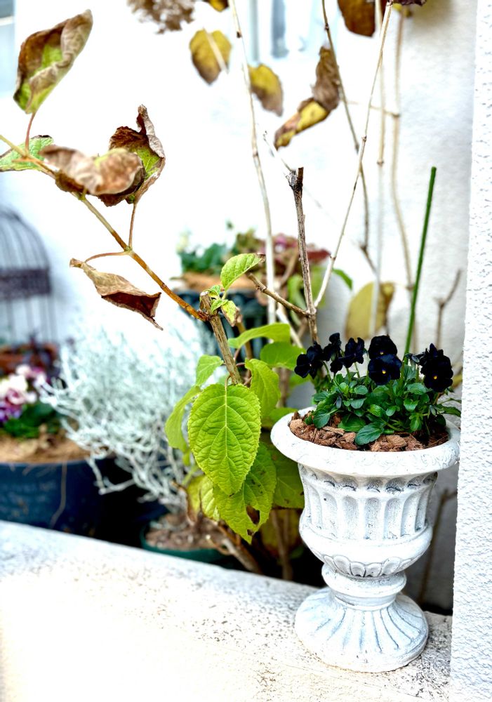ブラックとホワイトの鉢でシックに。一度やってみたかった組み合わせ❣️
