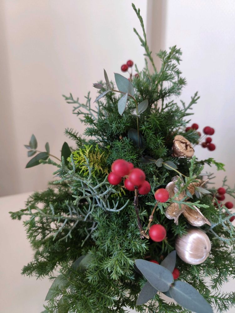 鉢植えのブルーアイスとユーカリを入れてミニツリー🎄と