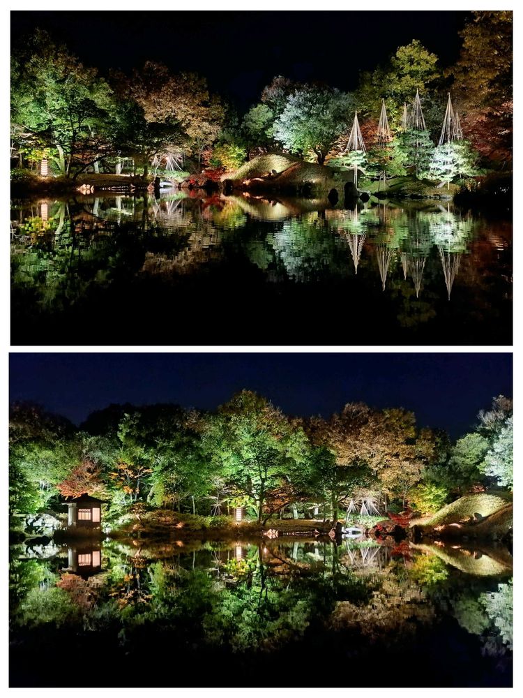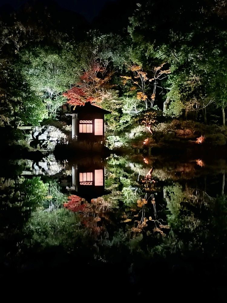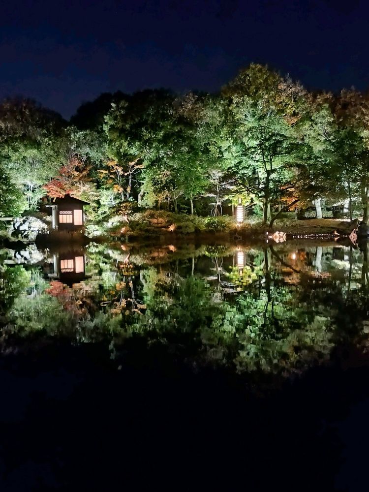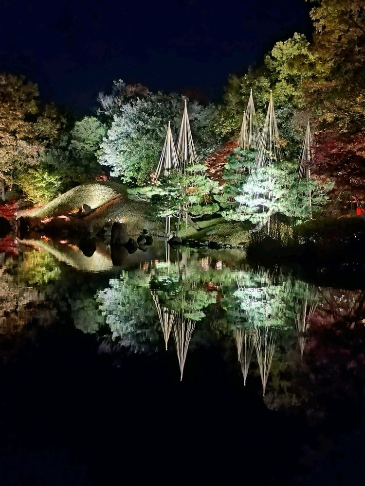 庭園の景色が池に反射して幻想的で綺麗でした✨
