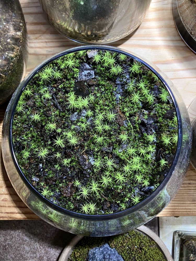 タマゴケは切り刻んで蒔いて湿度高めで管理すると割と早く小さな苔が出てきます!