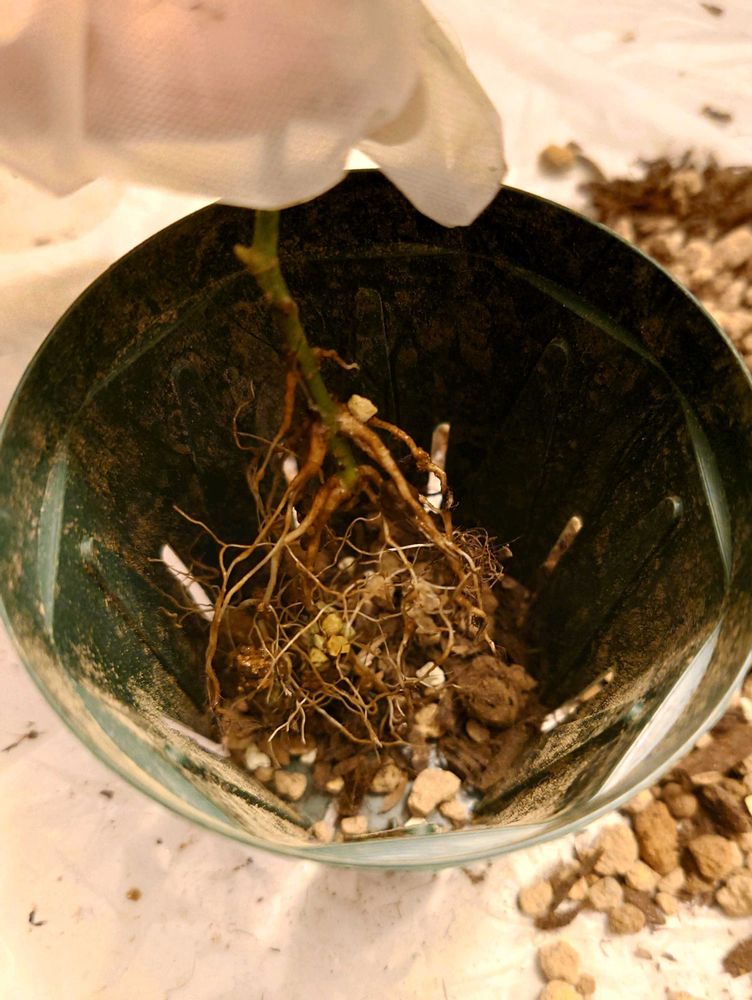 思ったより根は出てた🙇♀️ やって良かったのかとまだ緊張してる🤧 問題はこの子をいきなり朝晩冷え込む外管理にしていいのかどうか🤧