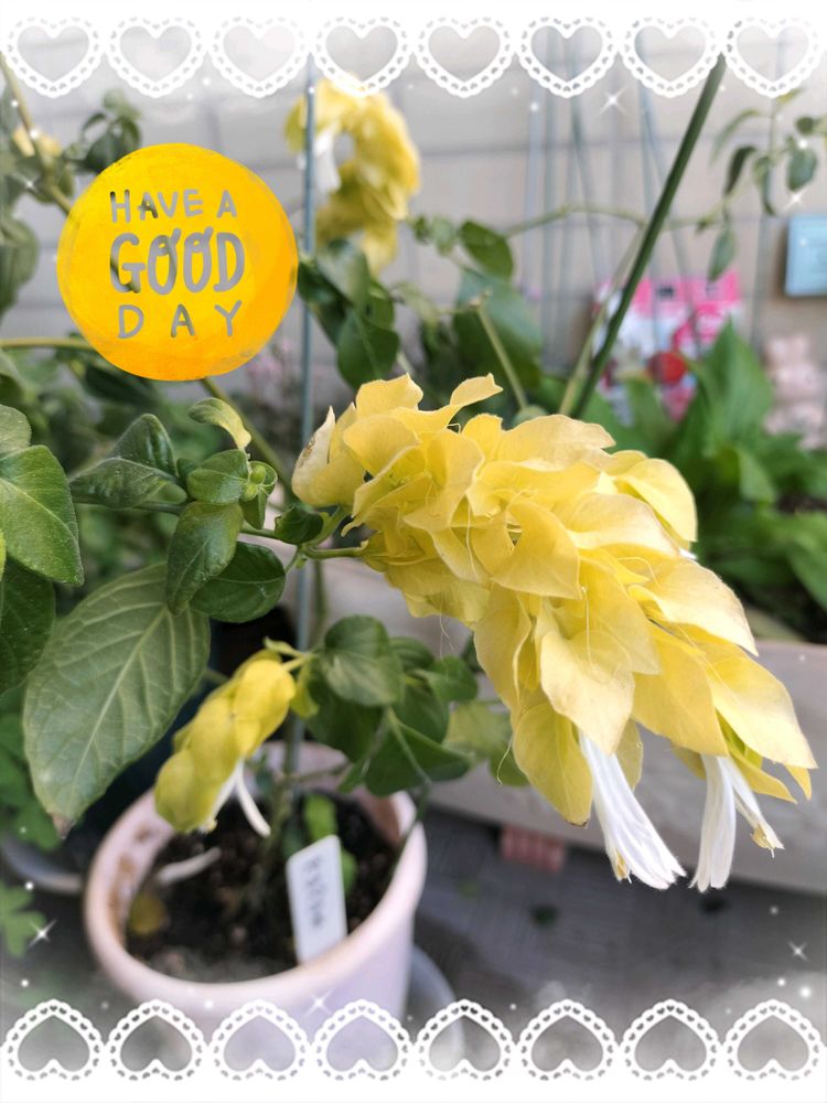 コエビソウ🦐と言えば赤なんだけど、花友さんがクリームイエロー💛のコエビソウ🦐🎁してくれました😆💞👍