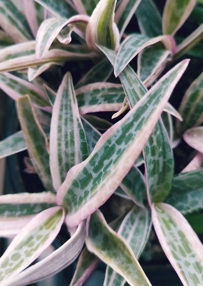 春〜秋は屋外管理☀、室内で過ごす冬季の方がピンクの縁取りが映えてます🙂
