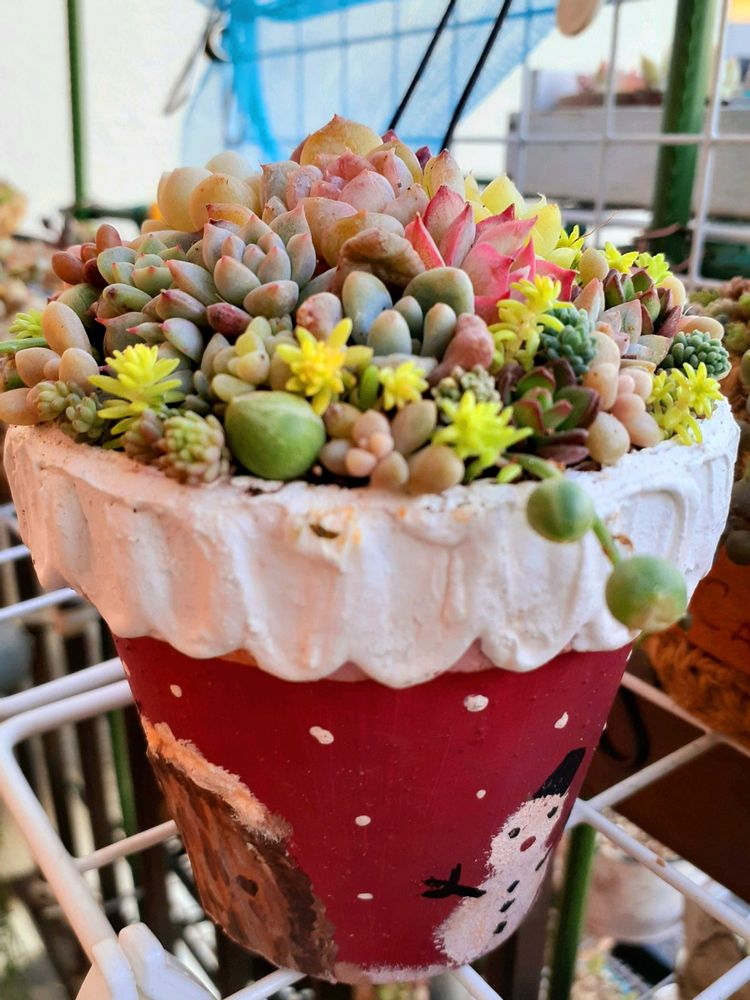 可愛いリメイク鉢ですね。注文出来ますか?多肉の寄せ植えしてるけど可愛くない。なつ子さんには、デコパージュしたの一杯もらって10年は、使ってるかな?メルカリで、多肉購入写真と同じの来るか心配,多肉専門店は、🚗行かないと遠いし高い。多肉初心者伸びたのを切って植えるだけで良いのかな?挿し芽初めての時はビックリ生命力凄い。折れたらそのまま挿してる。可愛くモリモリに植えてみたい。ピンセットで、細かいの出来るかな?早くメルカリ買ったの送って欲しいわ、中々届かない、皆さん器用、センス無いから、ガーデニング歴は長いけど最近は、足腰ひざ痛くて中々出来ない。マイペースで、ぼちぼちやりますわ。