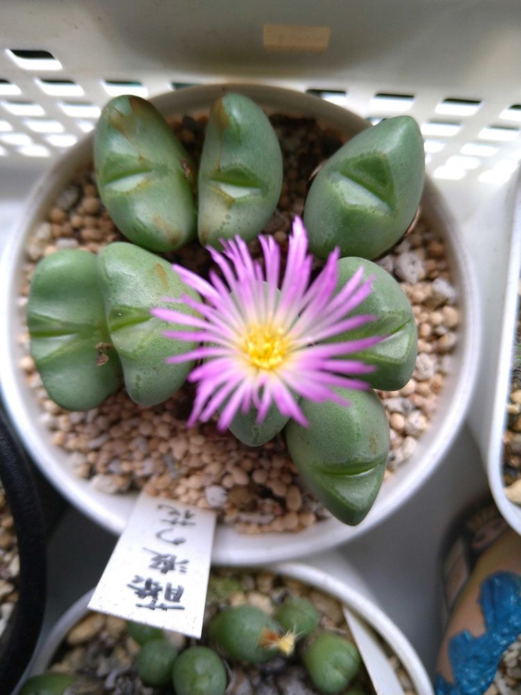 コノフィツムは普段変な緑の塊だけどお花咲くと可愛いのです✨
