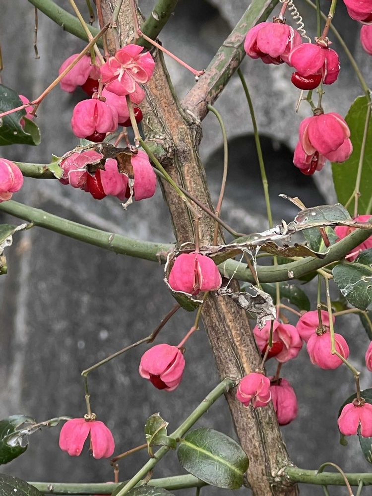 マユミ・実,竜のひげの実かも、紫色の綺麗な色に,庭の片隅にの投稿画像