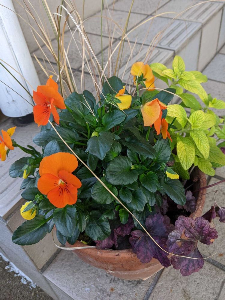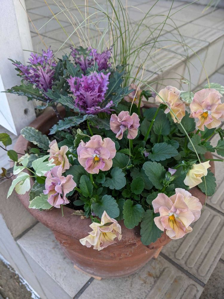 ひと月ほど経って馴染んできた冬の寄せ植え