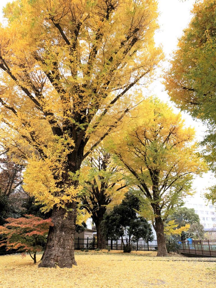 モミジ狩り、赤いモミジも美しいけど、黄金色のイチョウも美しいよね。地域の公園のイチョウです。