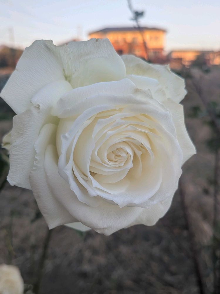 @YUMIKOさん命名?きらまるWhiteさん見事な咲き姿ですね🤍 バックの遥か遠い街並みの夕焼け感が宮殿での撮影のようです😄🎶
