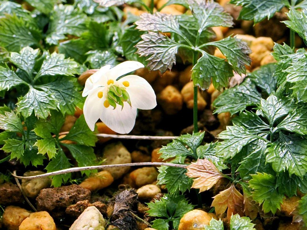 小石川植物園の冷温室に、なんとバイカオウレンが咲いていました✨