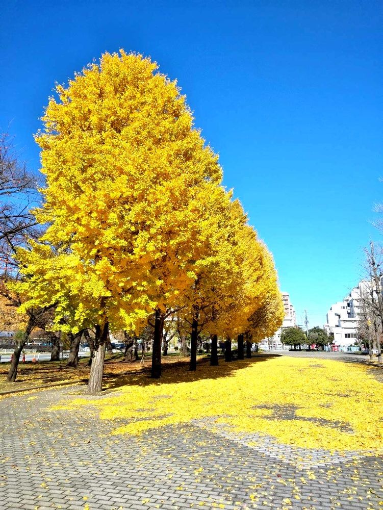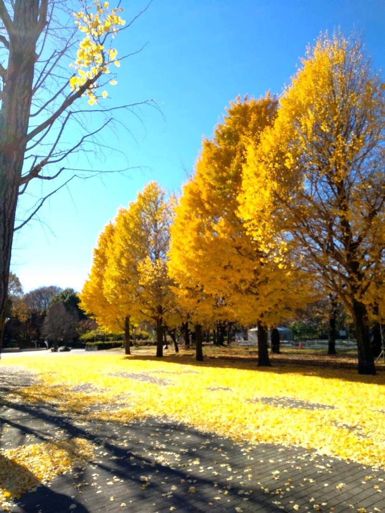 モミジ狩り、赤いモミジも美しいけど、黄金色のイチョウも美しいよね。地域の公園のイチョウです。