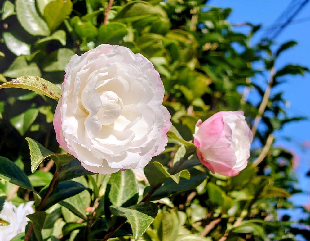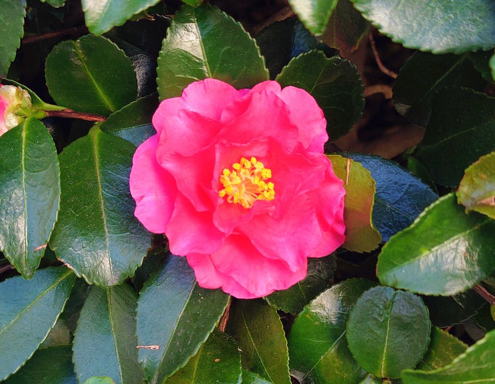 今日の午前、市内を散歩途中に見かけた山茶花。