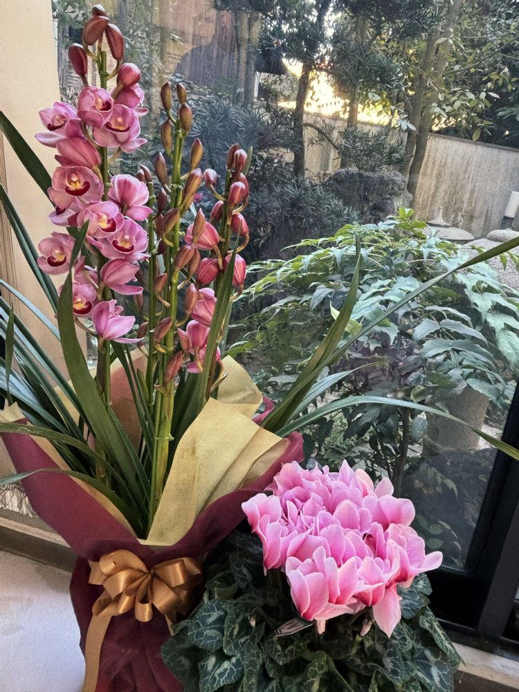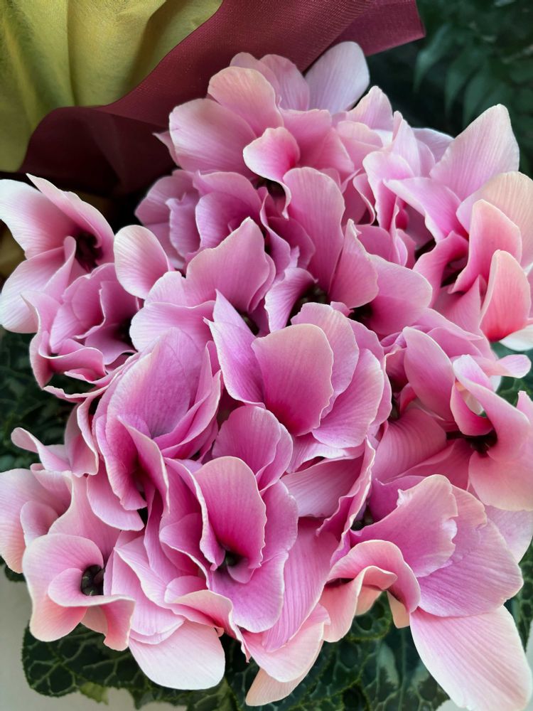 シクラメン🩷も花の束の太さが半端ないです。花好きの方からではなくて、職場の取引先からのものです。取引先というか?葬儀屋さんからなんですけどね😆💦